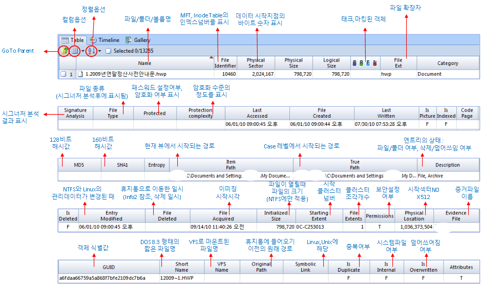 오늘은 EnCase의 가장 기본 화면인 테이블 뷰에 대해 살펴 보겠습니다. 테이블 뷰를 구성하는 각각의 컬럼에 대해 알아봅시다.