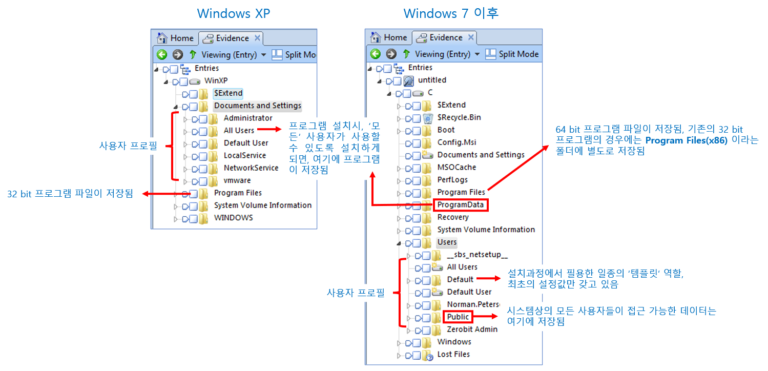 윈도우 시스템에서의 사용자 파일 및 폴더