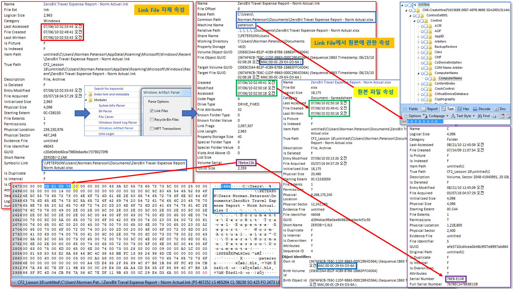 원본 파일명과 완전한 경로명을 포함하고 있으므로 링크 파일을 통해 어떤 특정일에 컴퓨터가 어떻게 설정되었는지 조사할 수 있습니다.