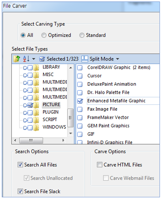 EP의 File Carver를 이용하여 EMF 파일 찾기
