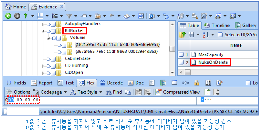 - 휴지통에서 잔존 데이터를 발견할 가능성이 낮습니다.