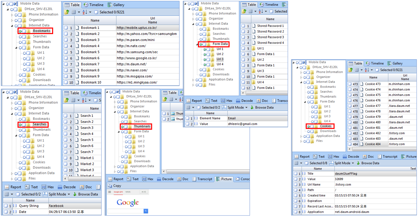 Bookmark 등 인터넷 히스토리 정보를 확인할 수 있습니다.