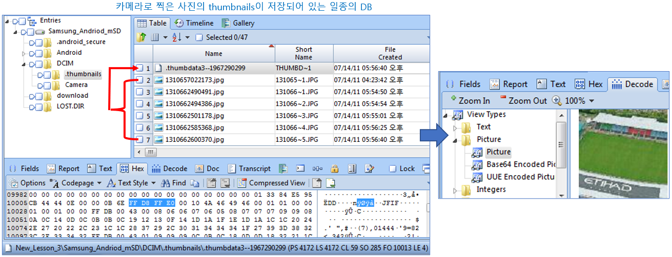 실제 사진을 삭제 하더라도 thumbnails이 남아 있을 수 있고, thumbnails의 생성시각으로 촬영 시각을 추정할 수도 있습니다.