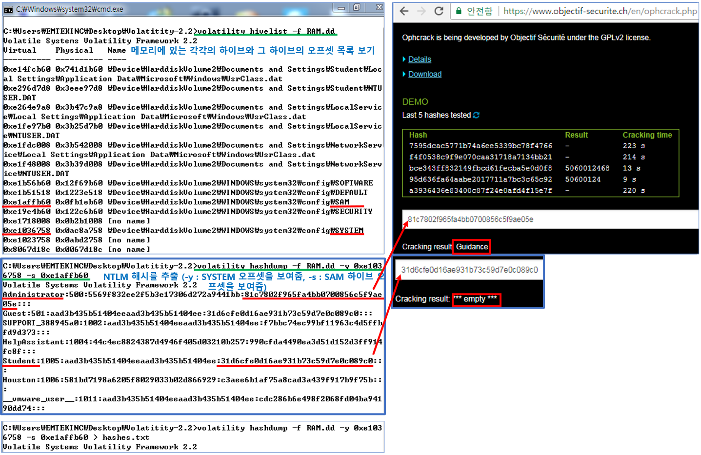 Volatility와 Rainbow table을 사용하여 RAM 덤프 이미지에서 패스워드 추출