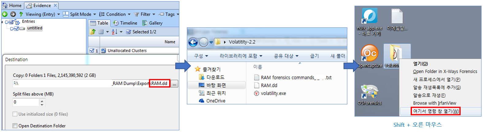 사용하기 용이하도록 ‘바탕화면’에 volatility 실행파일과 분석대상 DD 포맷을 위치시킵니다.
