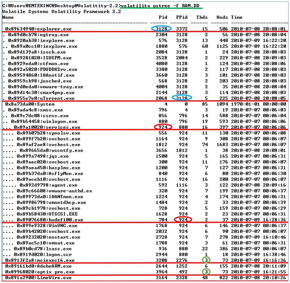 volatility pstree -f RAM.dd