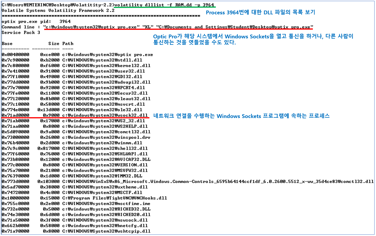 예) olatility dlllist -f RAM.dd –p 3964