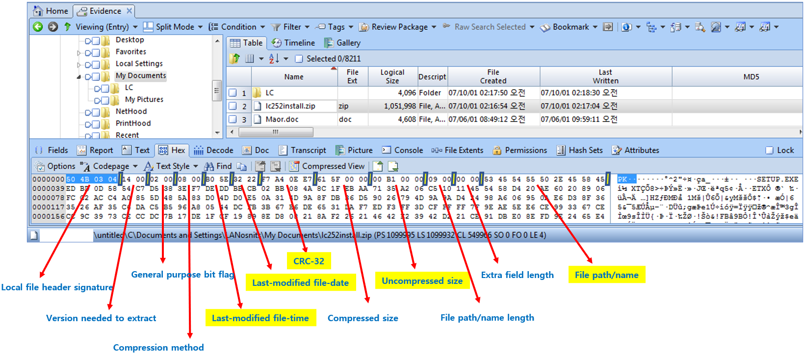 로컬, 중앙 디렉토리 파일 헤더를 찾아 디코딩하고, 그것을 자동으로 목록화하는 기능이 있습니다.