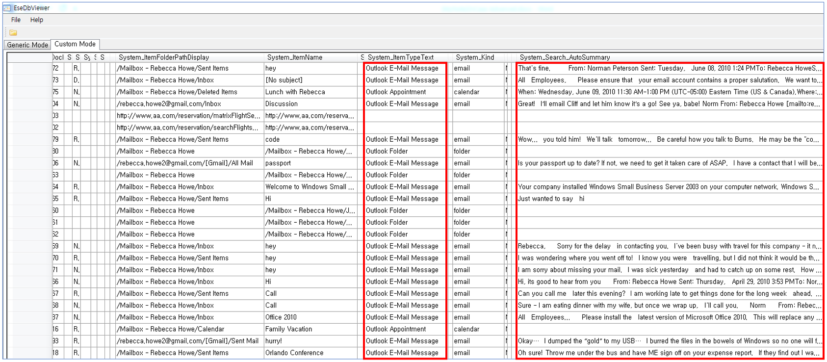 주목할 만한 것은 OutLook 이메일 메시지가 원격지 서버에 저장되어 있음에도 불구하고 상당한 량의 이메일 메시지가 Windows.edb 데이터베이스 파일에서도 발견된다는 사실입니다.