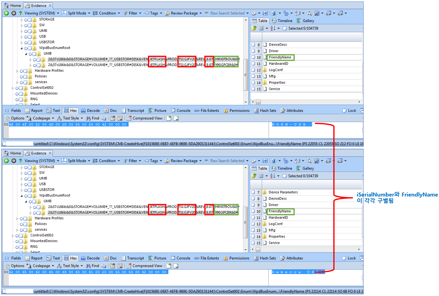 따라서, USB의 시간 정보는 레지스트리, 윈도우 이벤트 로그, Setupapi.dev.log의 정보를 모두 비교하여 결정하여야 합니다.
