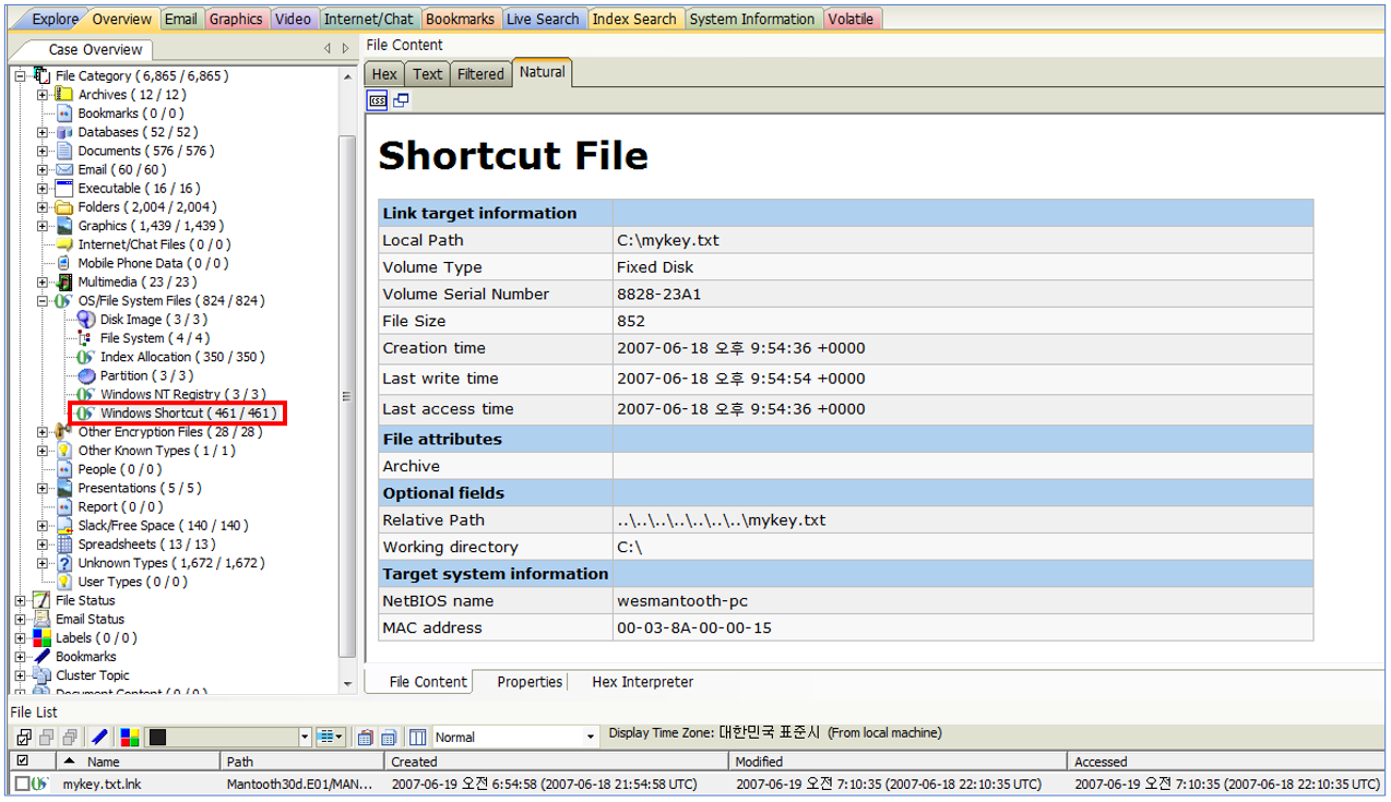 원본파일이 NTFS에 저장 되어 있을 때에만 링크파일에 기록됩니다.