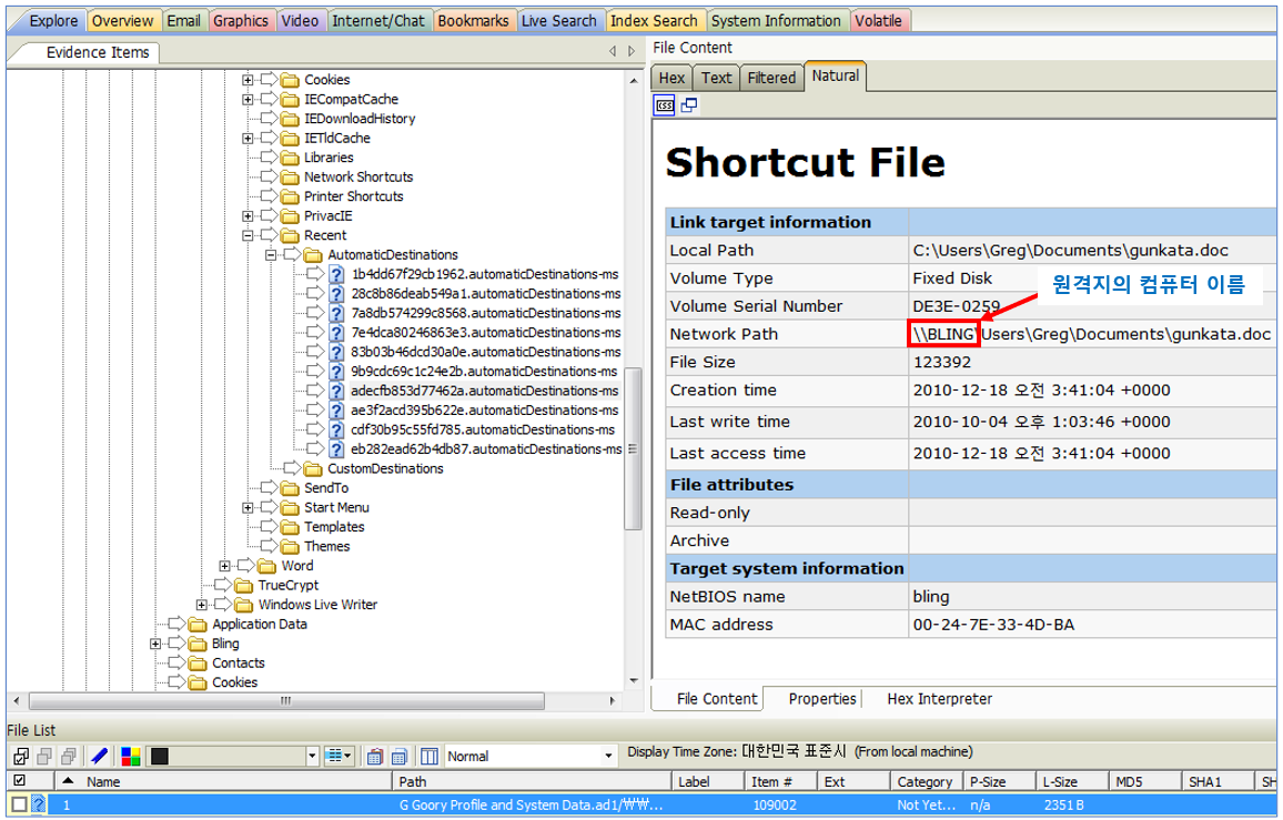 링크파일 분석을 통해 원격지의 컴퓨터 이름도 확인 가능합니다.