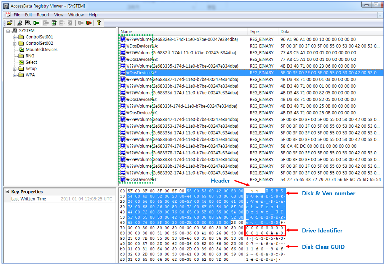 USBSTOR 키와 MountedDevices 키를 연결해 주는 연결자 역할을 합니다.