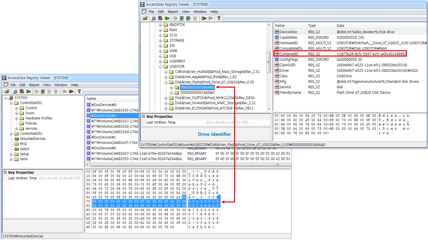 제조사의 해당 USB 장치안에 ContainerID 값을 제공하지 않을 경우, Windows가 임의로 값을 생성하여 할당하기도 합니다.