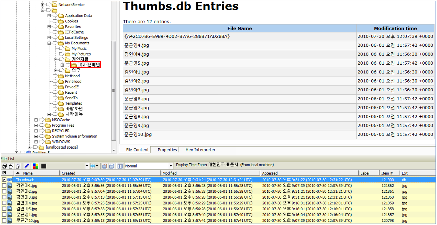 사용자가 원본 파일을 삭제하여도, thumb.db 파일 안의 정보는 그대로 존재합니다.