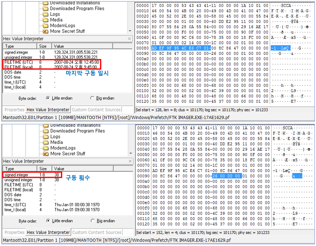 - 마지막 구동 일시 : Windows 64-bit date/time stamp