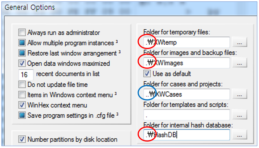 휴대용 XWF를 설치할 때는 ‘.’와 ‘..’ 옵션을 사용하여 XWF의 드라이브 이름이 어떤 것이 되든 상관없이 XWF를 사용할 수 있도록 할 수 있습니다.