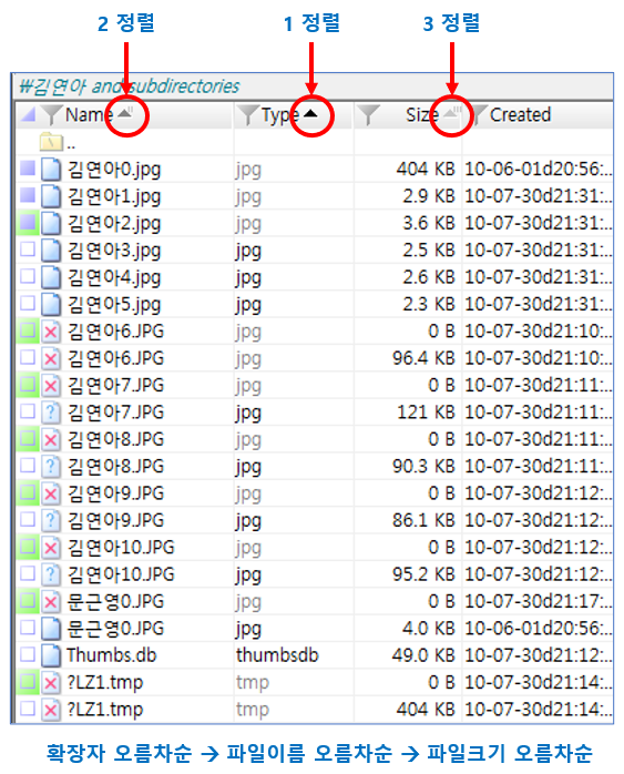 최대 3개의 컬럼까지 정렬 가능합니다.