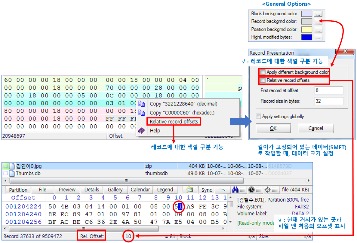 [Relative record offsets] 옵션