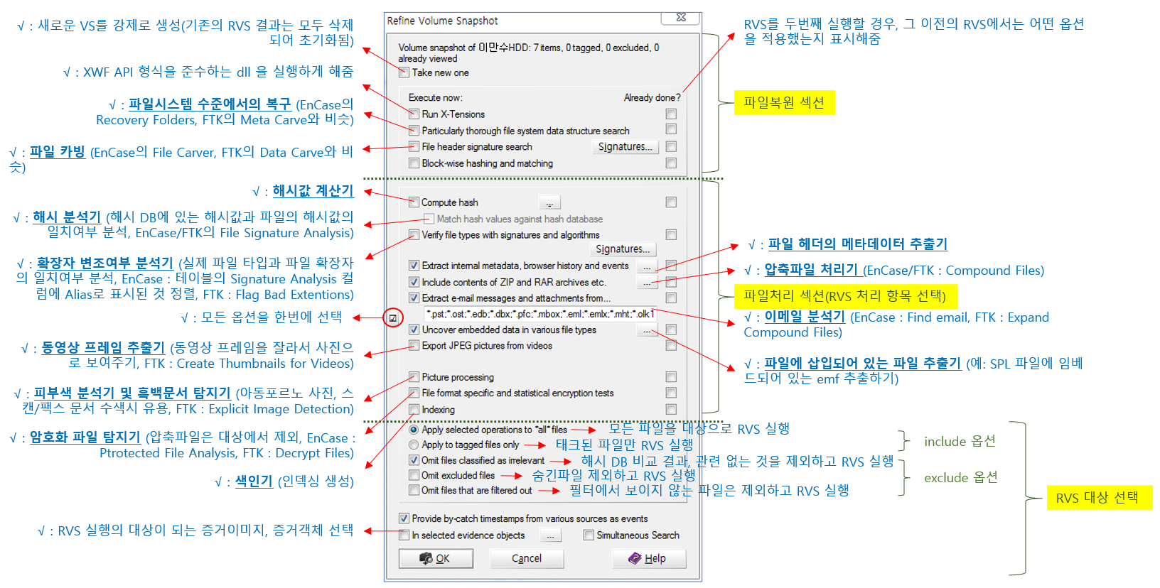 오늘부터 XWF의 가장 중요한 기능인 RVS (Refine Volume Snapshot)에 대해 알아 보겠습니다. 다만 RVS 인터페이스는 최신 버전(20 버전대)과 조금 다르므로 참고하시기 바랍니다. 그럼 이제 시작해볼까요.