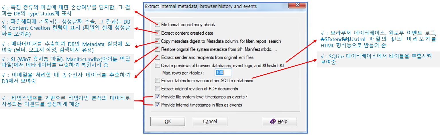 [Extract internal metadata, browser history and events] 옵션