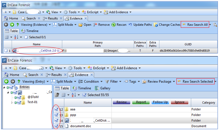 키워드 검색(Raw 검색)은 raw binary 만을 검색하기 때문에 복합파일, 압축파일 등 일부 파일의 경우 검색이 되지 않을 수도 있다. (따라서 이들 파일은 마운트를 먼저 한 다음 키워드 검색을 수행해야 함)