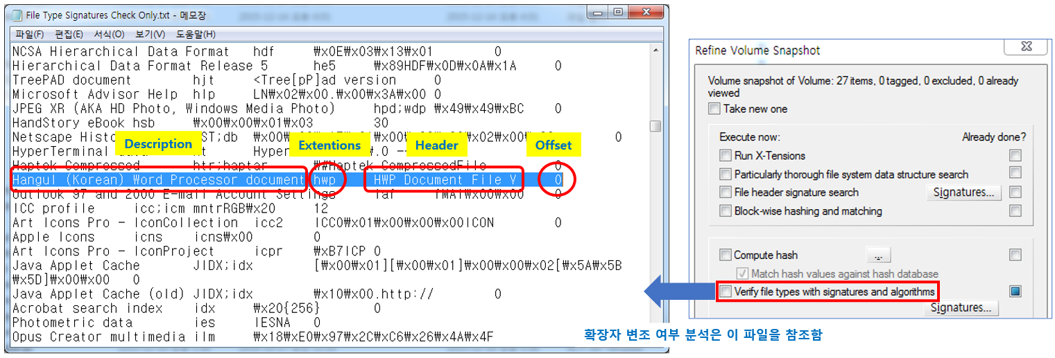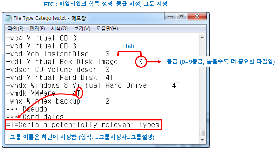 이 파일의 형식은 File Type Signatures Check Only.txt와 동일하나, 그룹으로 분류를 해놓은 것이 유일한 차이점입니다.