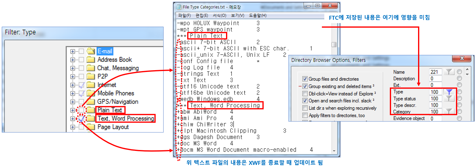 Directory Browser의 Type 필터가 수정되고 XWF를 종료하면 FTC가 디스크에 업데이트되어 저장됩니다.