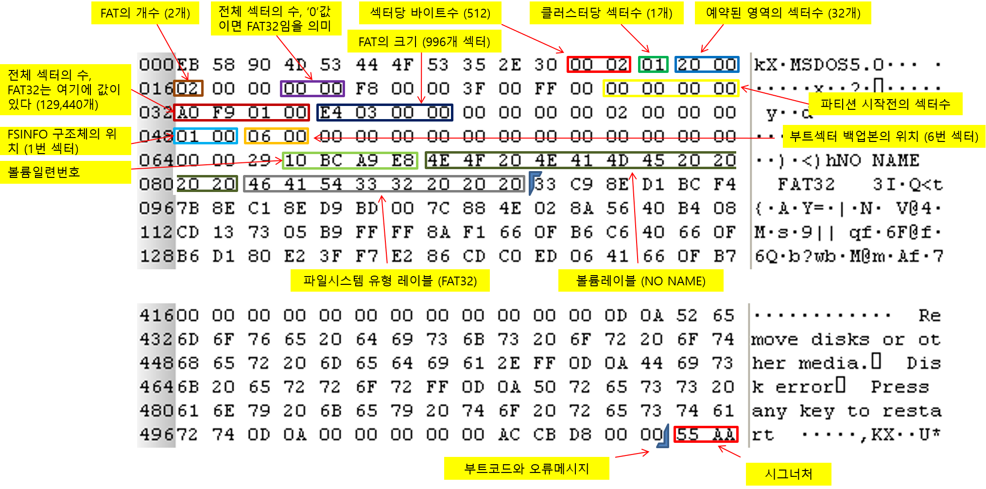 FAT 파일시스템의 첫 번째 섹터(0번 섹터) 입니다.