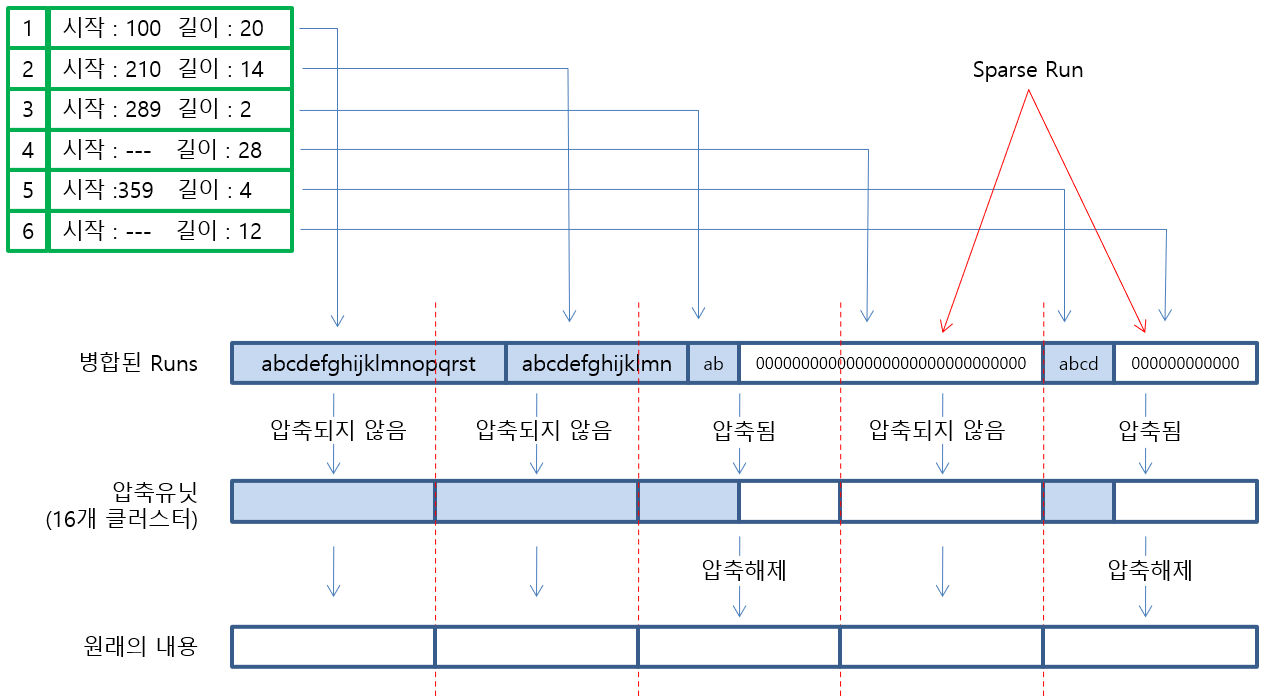 즉 Cluster runs에 ‘크기’만 있고, ‘시작 위치’는 없습니다.