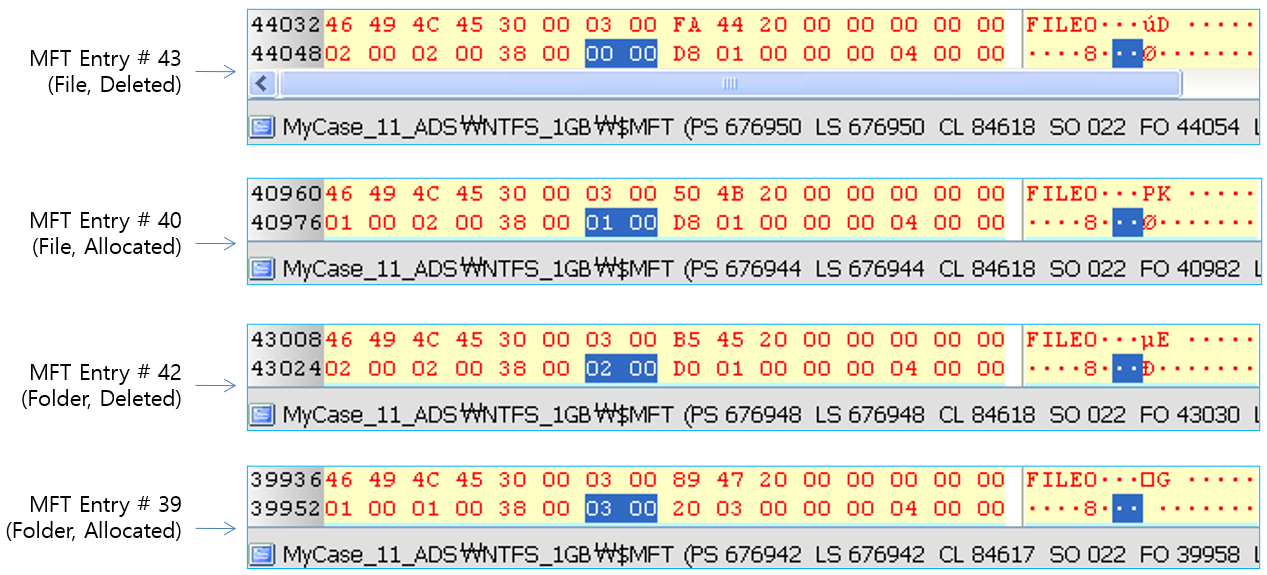 MFT 엔트리에서 할당된 엔트리와 비할당 엔트리를 구분하는 플래그
