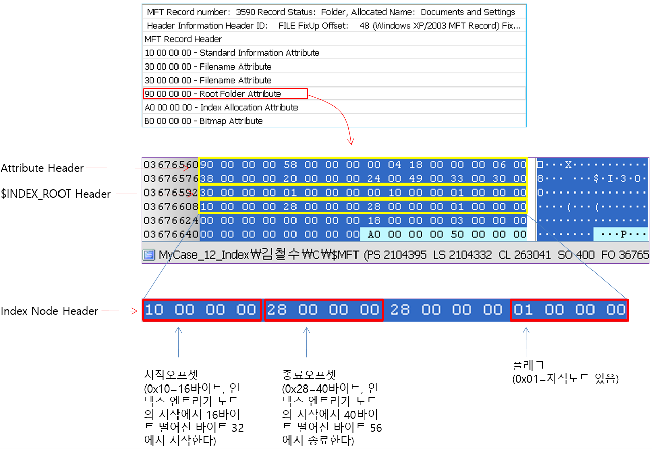$INDEX_ROOT 속성의 인덱스 노드 헤더