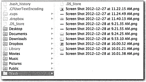 사용자가 삭제한 파일은 각 개인 사용자의 Trash에 옮겨 집니다.
