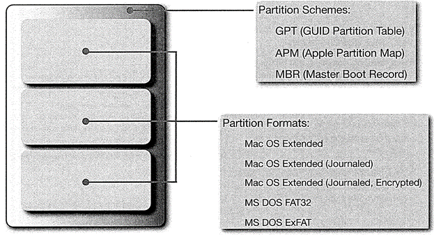 OS X 의 파티션 체계는 3개의 유형으로 나뉩니다.