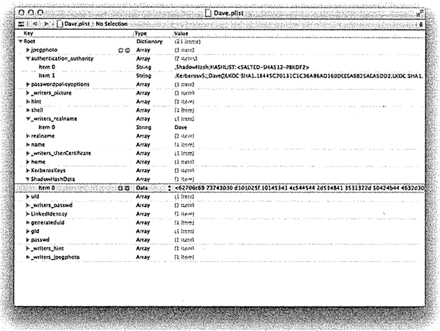 해시값은 사용자의 .plist 파일 안의 ShadowHashData 필드 안에 보관됩니다.