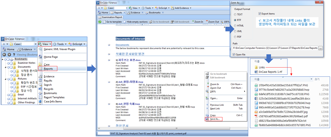 EnCase에는 내장형 보고서 생성기(built-in report generator)라는 강력한 모듈이 포함되어 있죠. 오늘은 북마크된 결과물을 분석보고서로 내보내는 기능에 대해 알아봅니다.