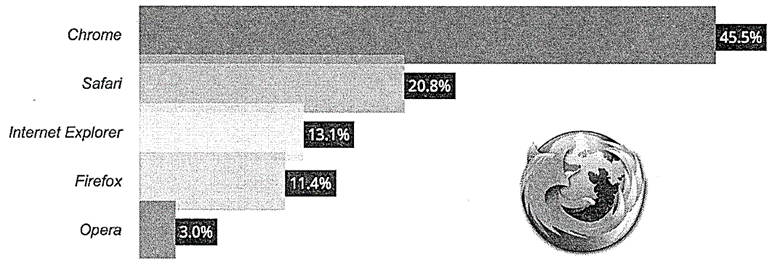 2015년 11월 현재 Firefox는 1.7% 정도이며, 사용량이 Safari에 비해 떨어집니다.