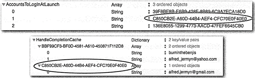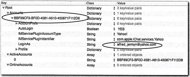 Yahoo plist는 야후 계정에 대한 상세한 사항을 보여줍니다.