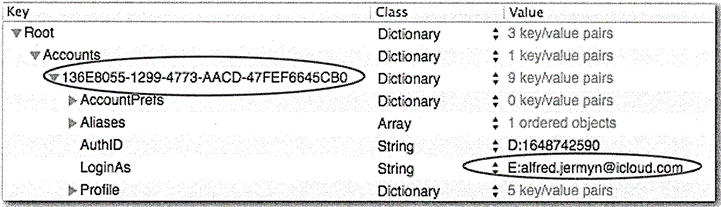 iMessage plist는 iCloud 계정에 대한 상세한 사항을 보여줍니다.