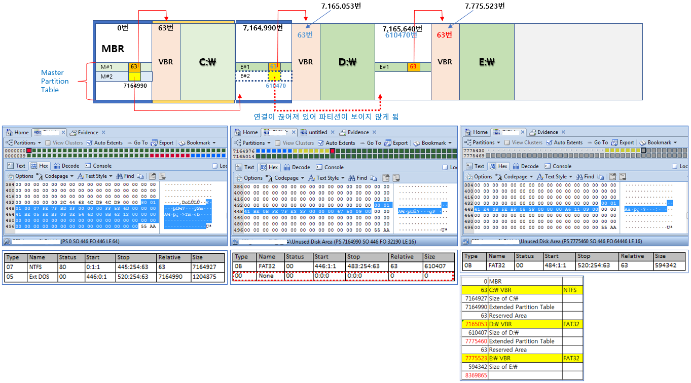 (10) 7,775,523번 섹터는 E 드라이브의 시작위치이고, VBR이 존재합니다.