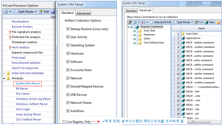 Evidence Processor에서 [System Info Parser]를 이용하면 레지스트리 정보를 쉽게 찾을 수 있습니다.
