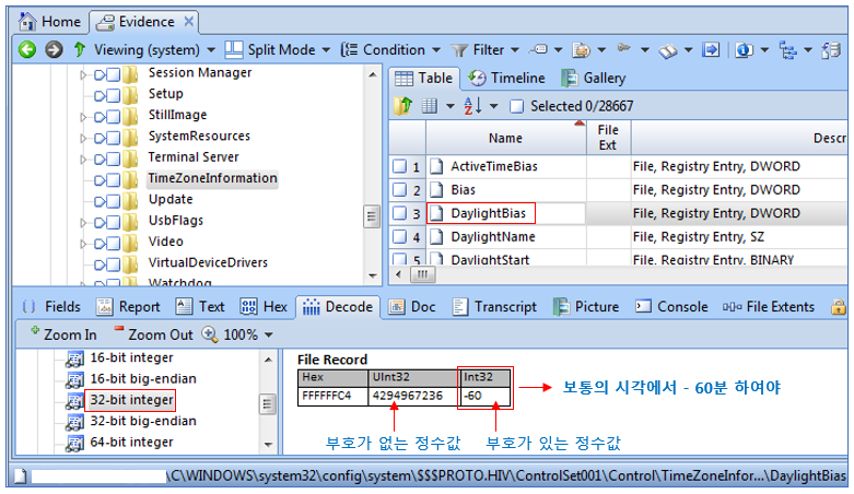 윈도우나 EnCase가 날짜와 시간 정보를 읽게 되면, 현재 컴퓨터에 설정된 또는 EnCase가 설정한 ‘타임존’을 기반으로 정보를 보여주게 됩니다.