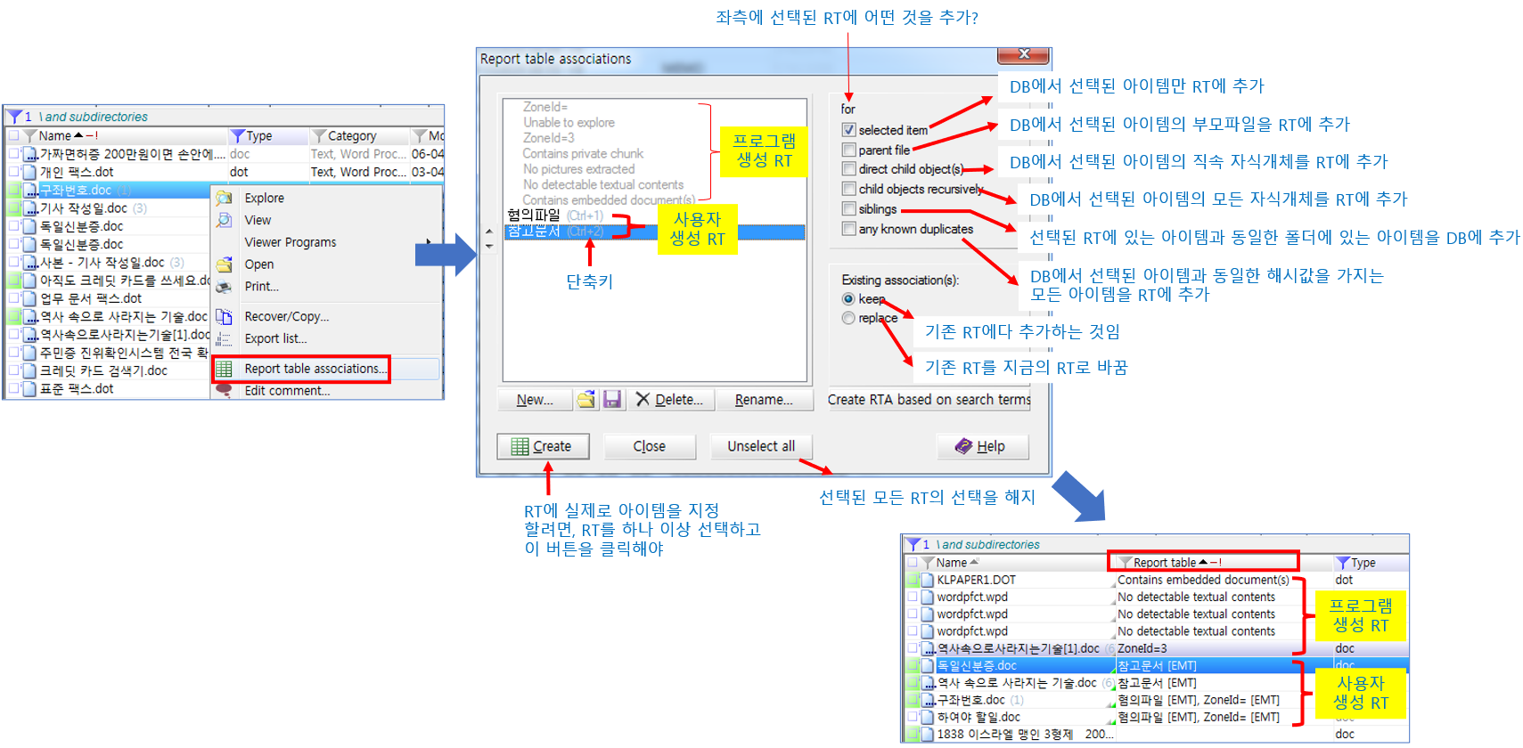 안녕하세요. 도깬리 포렌식스 입니다. X-ways 시리즈는 오늘 까지 입니다. 모두 수고하셨습니다.^^ 보고서 생성 XWF 보고서는 3개의 섹션(메인, RT, 케이스 활동 로그)으로 구성되어 있습니다. 메인 보고서(기본 보고서) - 케이스 생성일 - 케이스 파일 경로 - 분석가 정보 - 이미지 파일 경로 - 케이스에 아이템이 추가된 날짜 - 아이템의 해시값 - 섹터 수 - 전체 용량 - 이미지 해시 검증 등 RT 섹션 - 파일의 메타데이터 - 썸네일 - 이메일 - 바로가기(.lnk) 등 RT와 관련 있는 파일 정보 보고서 생성 방법 [Case data]에서 [File] --> [Create Report] 선택 기본적으로 케이스에 있는 모든 증거개체에 대한 데이터가 선택된 분석보고서 섹션에 포함되게 합니다..