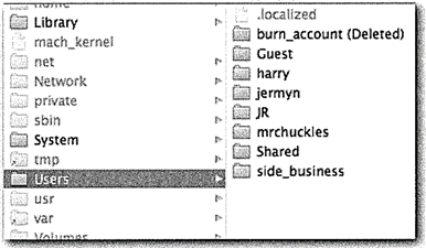 ‘Users’ 디렉토리는 하드드라이브의 최상위 root에 위치합니다.